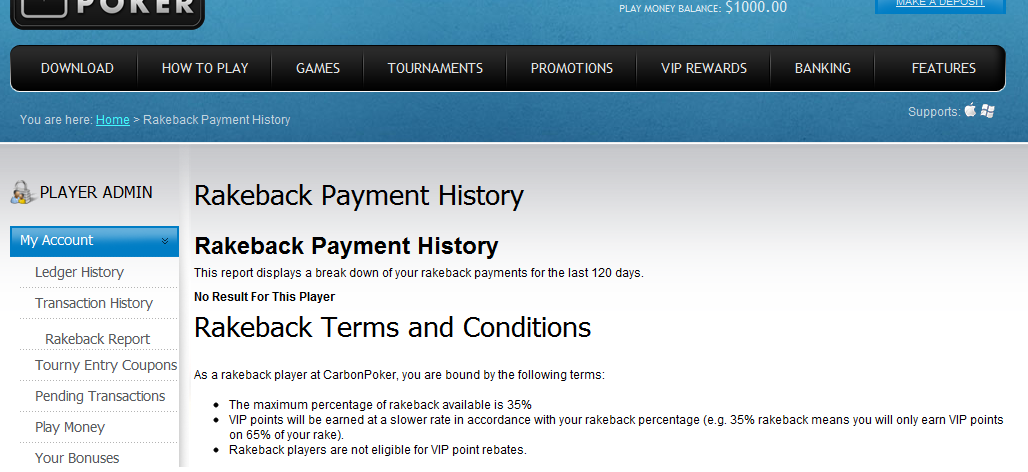 There's an easy way to tell if your account is getting Rakeback at Carbon Poker.
