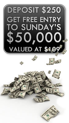 For a limited time only, CarbonPoker is giving a FREE $109 entry coupon to Sunday's $50,000 with any deposit of $250 or more.